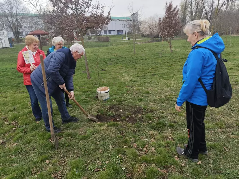 Egyesületünk két évvel ezelőtt ültetett egy fát a Józsaparkban. A futópálya építése miatt kiásott fa helyett egy új fát ültettünk.